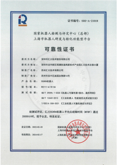 汇川SCARA机器人通过MTBF 20000小时测评