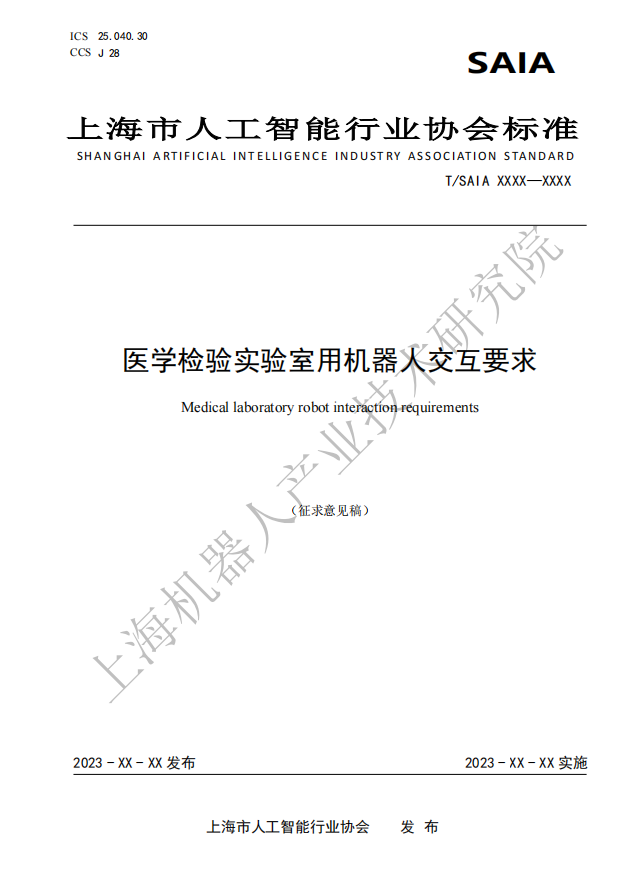 由上海市人工智能行业协会归口,HTH.COM-华体会(中国)机器人有限公司官网有限公司作为主要起草单位研制的四份标准:《医学检验实验室用机器人通用技术条件》、《医学检验实验室用机器人系统安全要求》、《医学检验实验室用机器人交互要求》、《医学检验实验室用机器人使用环境要求》现公开征求意见。